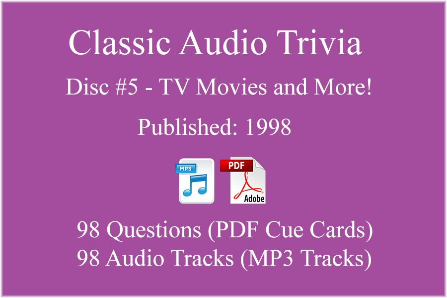 Classic Game Show Mania Audio Trivia - Disc 05 - TV Movies and More! - Released 1998 ⤷ Model Number: AT-CLASSIC-05 | |