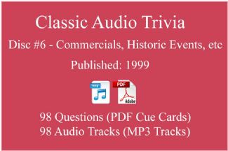 Classic Game Show Mania Audio Trivia - Disc 06 - Commercials, Historic Events, etc - Released 1999 ⤷ Model Number: AT-CLASSIC-06 | |
