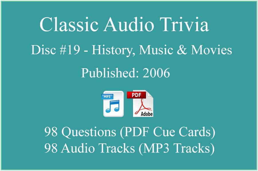 Classic Game Show Mania Audio Trivia - Disc 19 - History, Music & Movies - Released 2006 ⤷ Model Number: AT-CLASSIC-19 | |
