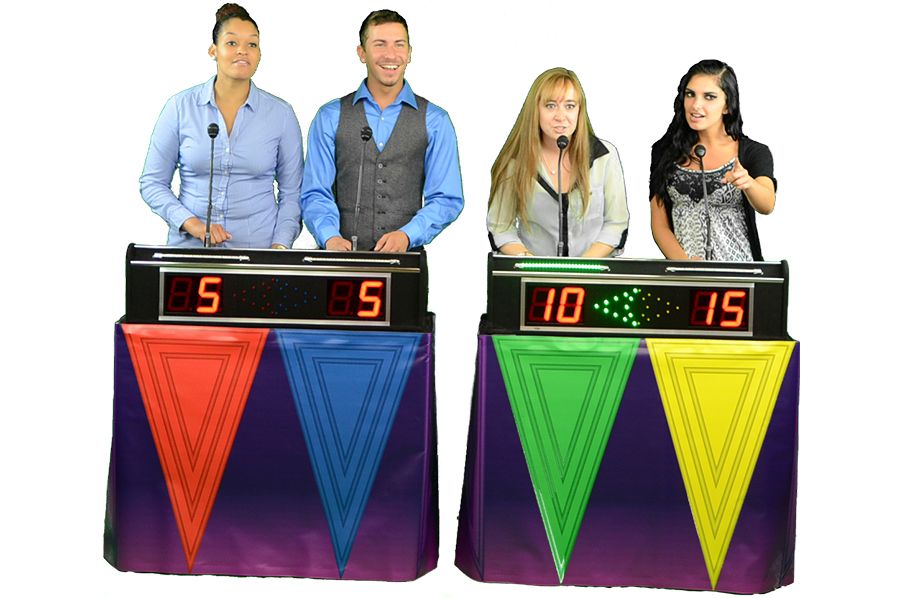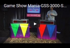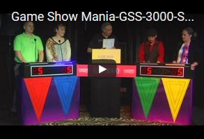 GSS-3000 The GSS-3000 is our classic and traditional 4 player lock-out game show system. From the systems wireless functionality to its rock-solid circuitry the GSS-3000 is still one of the most popular game show systems spanning many genres which include but are certainly not limited to: professional entertainers, churches, talent development coordinators, corporate training and virtually any venue where people are both entertained and educated! The lock-out feature built into the GSS-3000 means that when a player buzzes in, it will lock-out the other players allowing the host to know who buzzed in first. The system comes standard with 2 full sized podiums, 4 dynamic microphones, LED player position lighting, 2 wrap around Velcro vinyl skirts, a wireless remote and receiver, a hard-wired backup controller, a link cable to connect the podiums and a system user manual. This system can be used in conjunction with software titles such as “Game Show Mania Deluxe” and “Fabulous Face-Off”. All of our systems come with a one year parts and labor warranty and excellent customer support. Specifications: