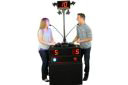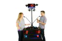 On The Spot “On The Spot” takes “buzzing in” to the next level! Not only can you buzz yourself in but now you can also buzz in your opponent! “On The Spot” can be used in any number of gaming ideas or simply stick to the classic 3 round paradigm. The first round is basic trivia game play using the colored buzzers for each player. In the second round you can then use either the colored buttons to answer or by using the yellow “On The Spot” button to buzz in your opponent. After your opponent has been buzzed in, their microphone is live and the bright spotlights shine down on them literally putting them “On The Spot”! In the third round you can start the countdown clock and give your players a specific time to answer a question, and if neither of them can answer within the allotted time, both players lose points! The possibilities are endless with the new “On The Spot” game show system. The system comes with a full podium, countdown clock, lock-out capability, mounting pole for the clock, 2 condenser microphones, a DI box for sound filtering, wireless and wired remotes and a detailed user manual. The lock-out feature built into the “On The Spot” means that when a player buzzes in, it will lock-out the other players allowing the host to know who buzzed in first. The "On The Spot" is a stand-alone system and will not directly interface with our software. All of our systems come with a one year parts and labor warranty and excellent customer support. Specifications: